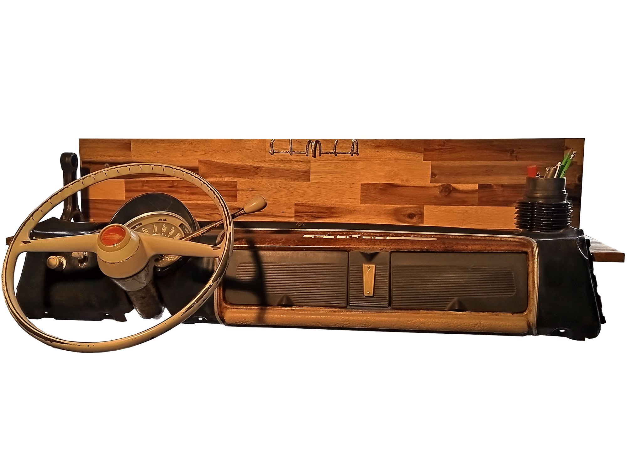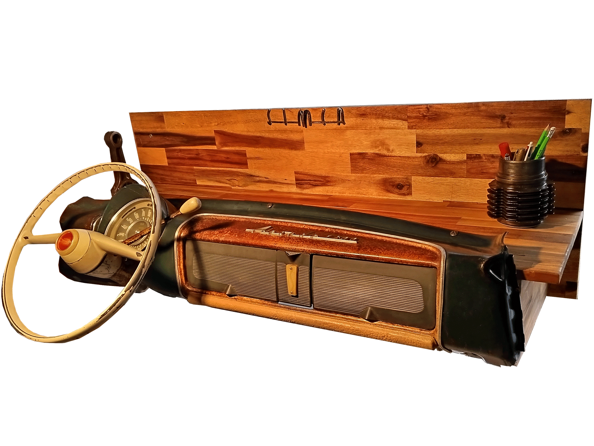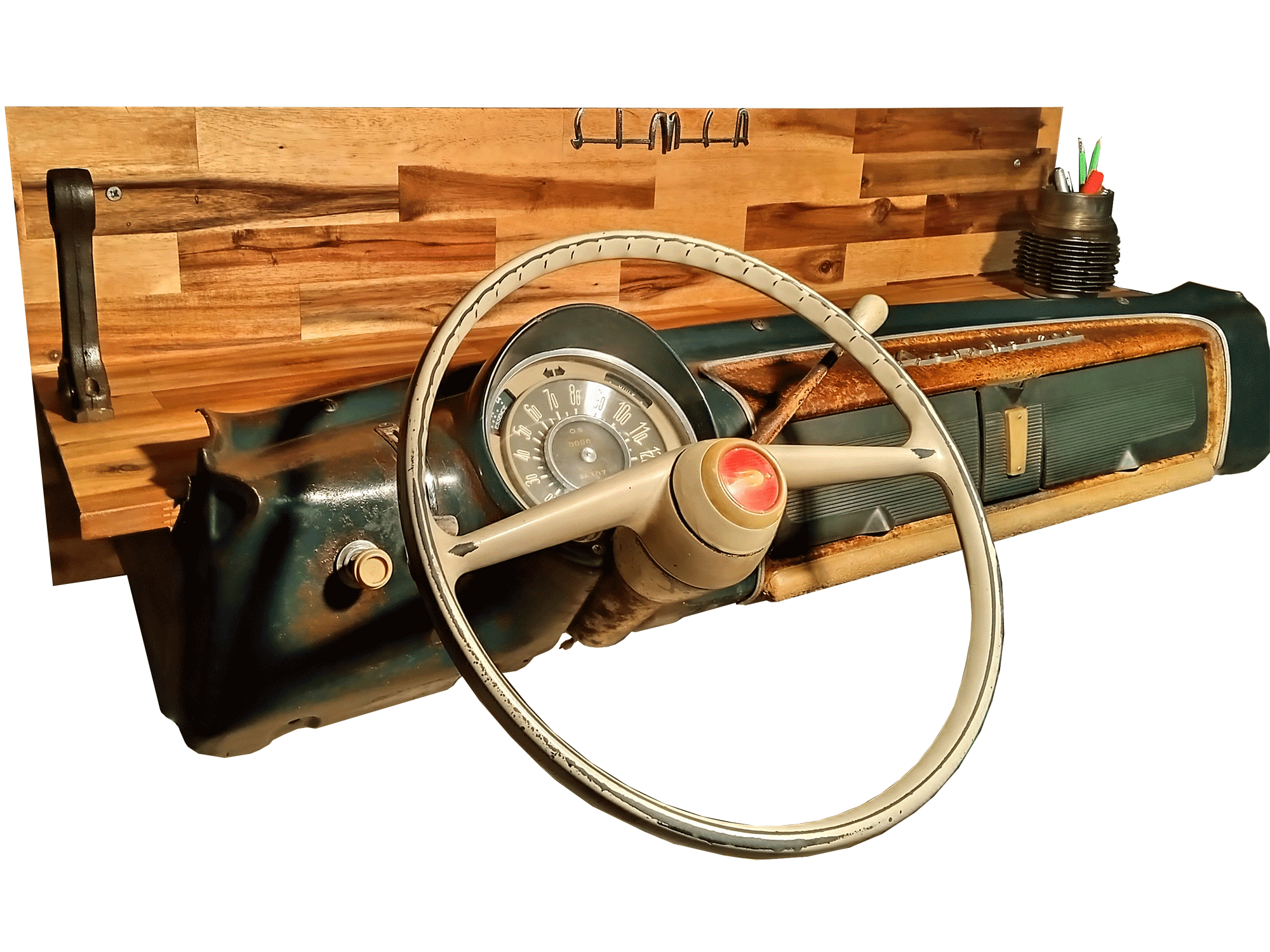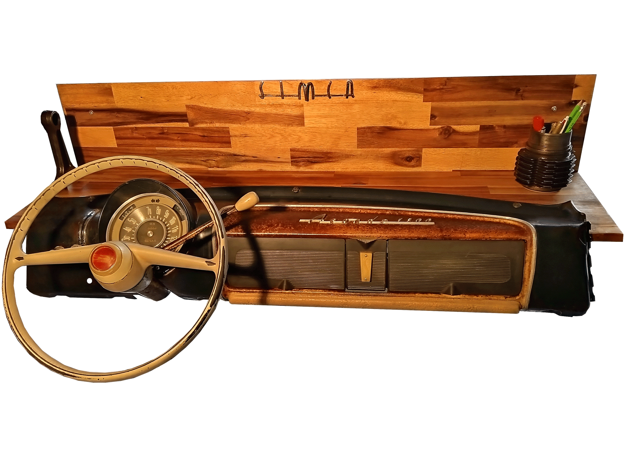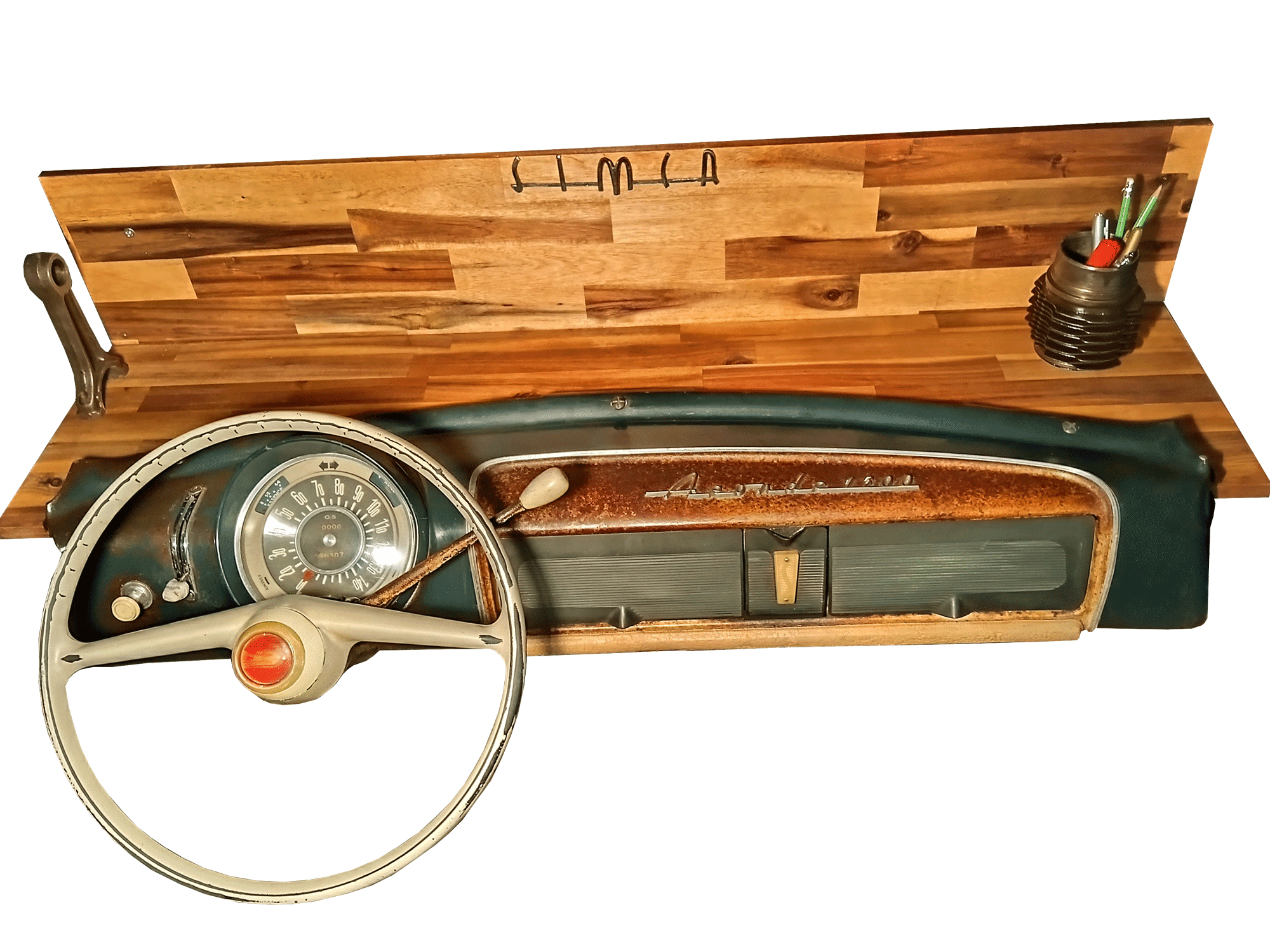 Ce cadeau voitures anciennes, tableau de bord de Simca Aronde A90, l’Aronde, était la voiture la plus vendue en France en 1956. Être un (e) passionné (e) de voitures anciennes, c’est aussi aimé avoir du mobilier sur le thème de l’automobile ancienne.