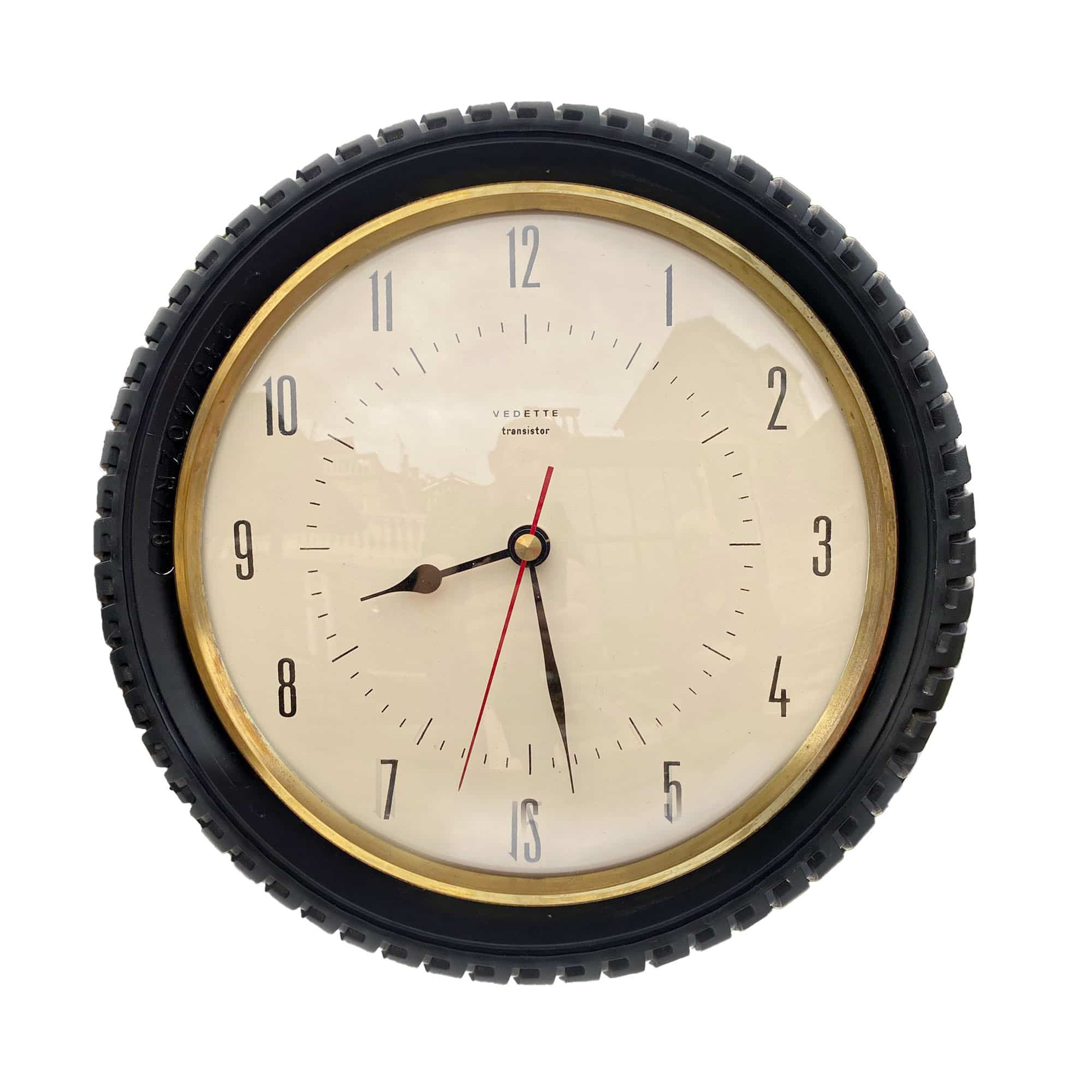Vous êtes sans cesse à la recherche d’une idée cadeau déco garage, cette horloge antique Vedette, des plus original, plaira à coup sûr à son destinataire : une horloge murale en forme de roue de voiture.