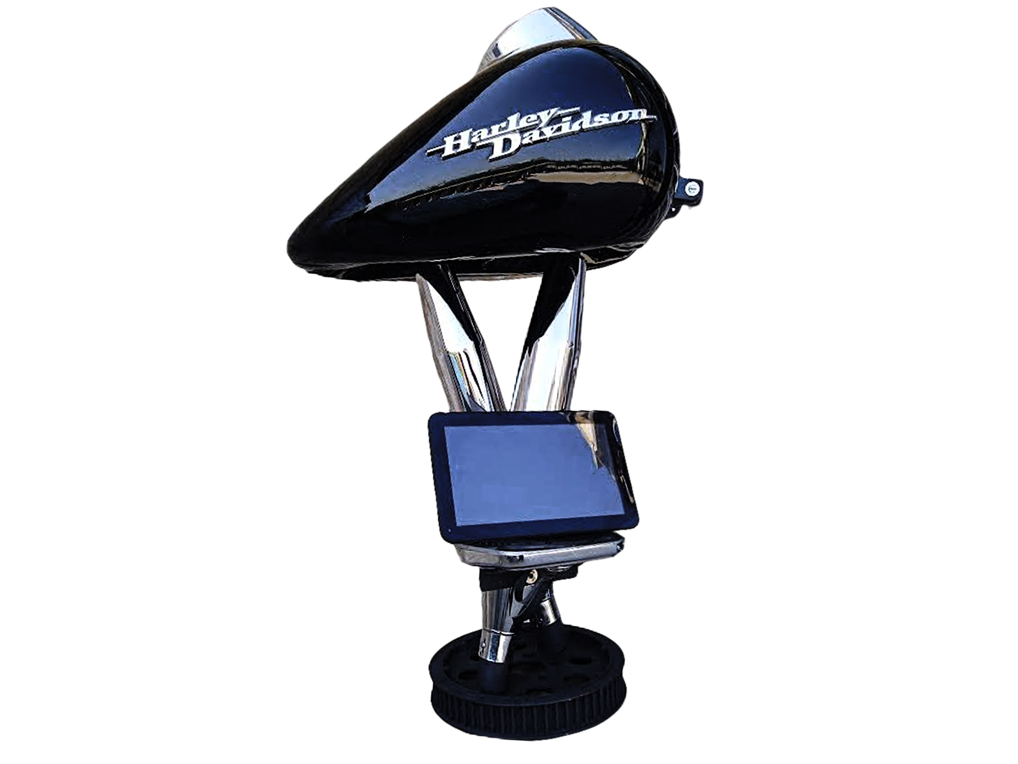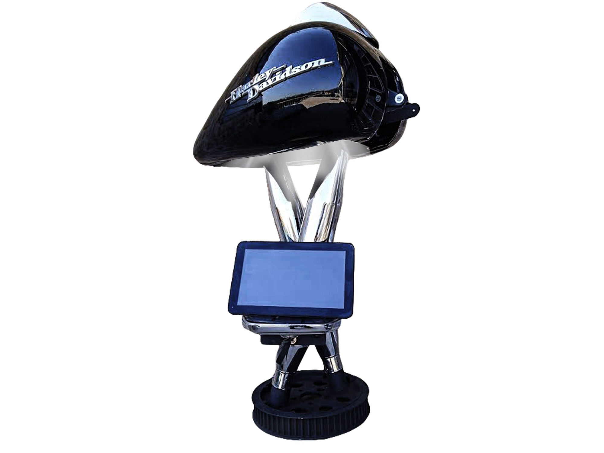 Par ailleurs, ce cadeau Harley Davidson peu servir en porte tablette, porte iPad. En outre, dans ma galerie d’œuvre d’Art sur l’automo et moto voici une autre création Harley Davidson