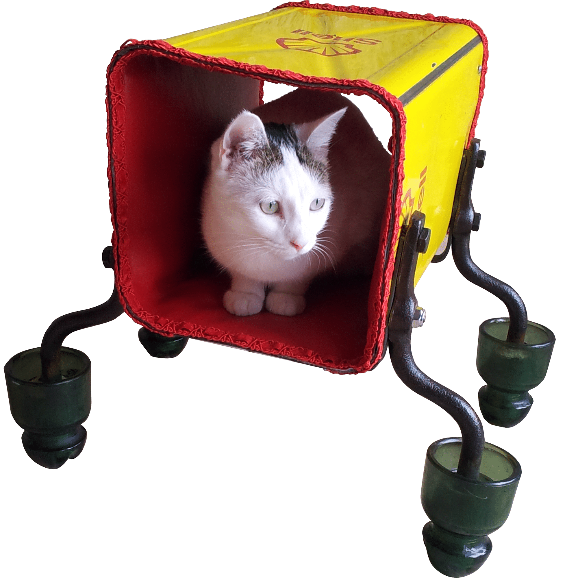 Cet accessoire animal design lit chat original écologique, est conçu avec un bidon Shell collector resté volontairement dans son jus afin de pouvoir nous raconter son histoire.