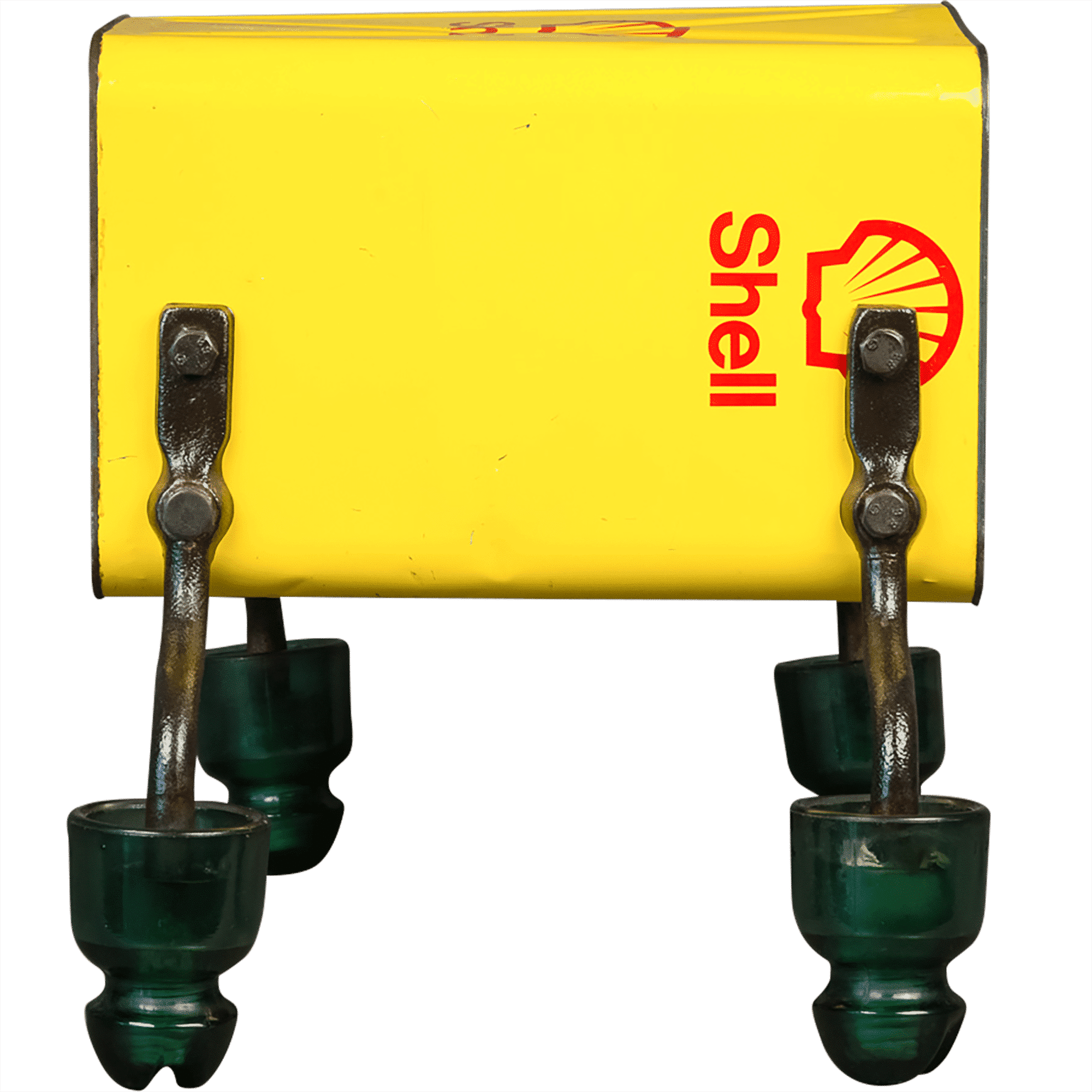Shell à comme emblème (le pétoncle), 2 couleurs, jaune, rouge caractérisant la marque que l’on peu apercevoir sur le bidon Shell collector de ce lit , un bel accessoire animal design haut de gamme.(Les objets Shell comme ce lit chat original, deviennent rare à chiner, je l’ai déniché chez un collectionneur de pièces Shell, commençant à revendre quelques pièces de sa collection pour en acquérir de nouvelles).