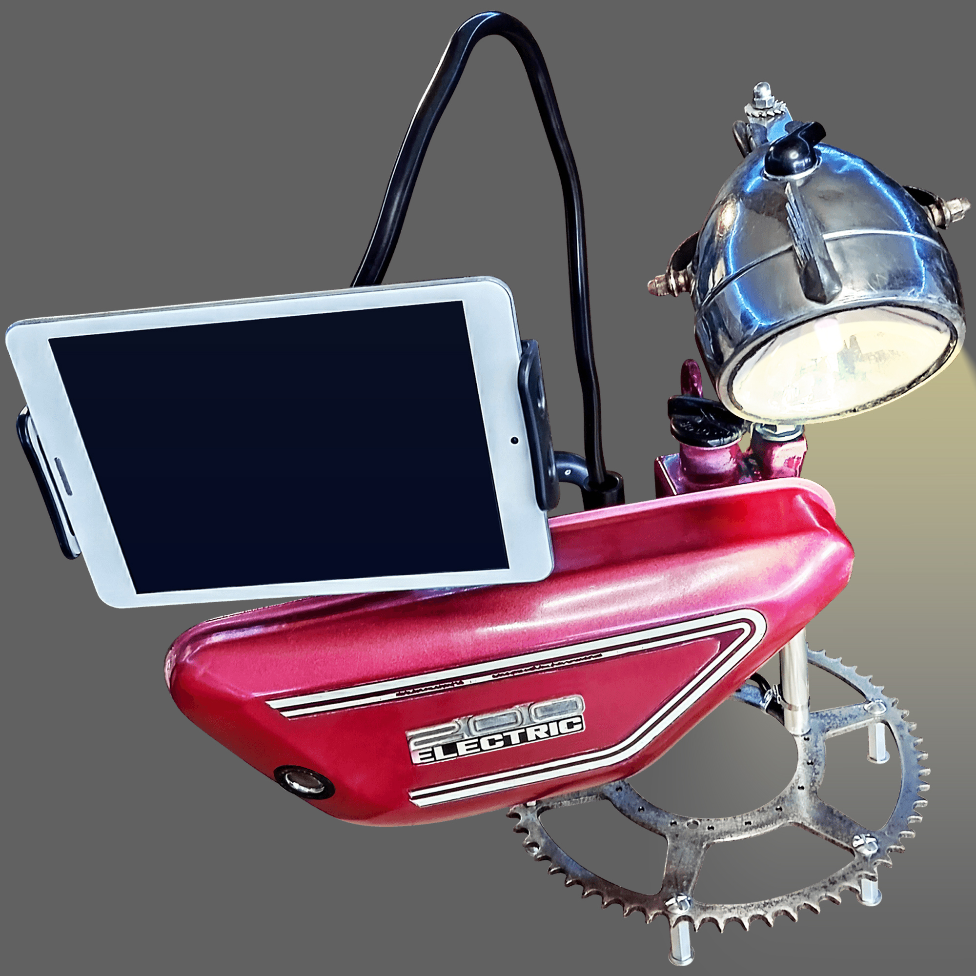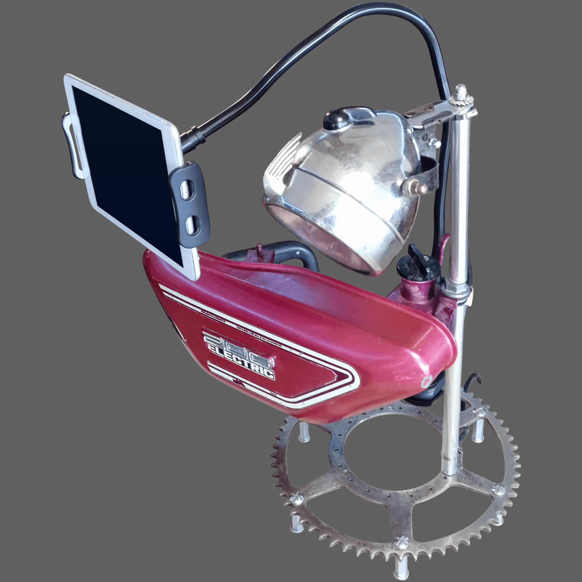 Passion Yamaha 200 électric de 1972 Daniela DAUDE artiste mobilier avec pièces de motos et autos