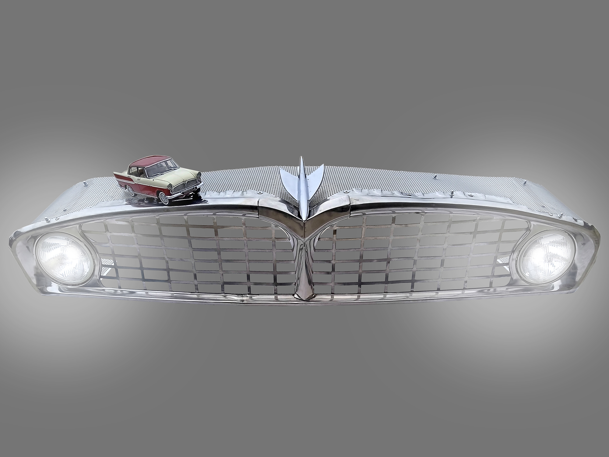 Sachez que cette calandre est aussi celle de la Simca présidence V8, seule fabrication française à moteur V8, servant aux déplacements de la haute administration, en 1958 la Simca Présidence s’ajoute au catalogue Simca.
