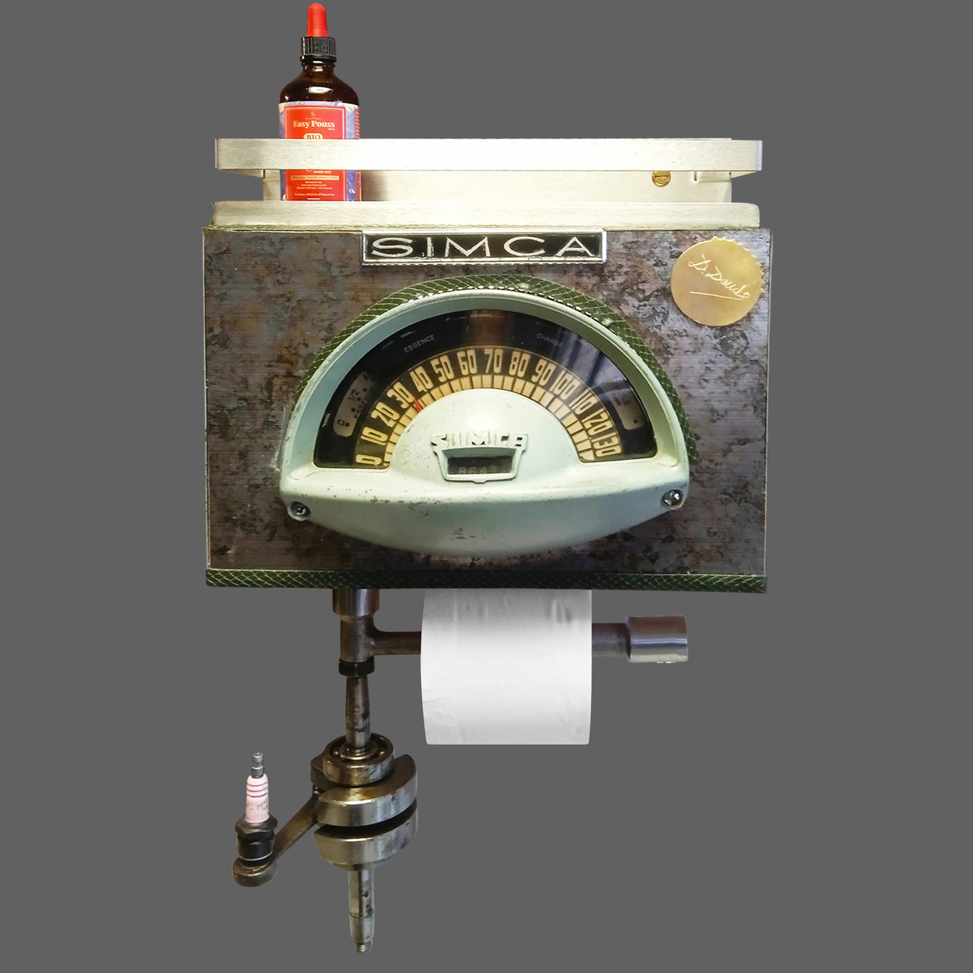 Avec ce support papier toilette design, faites de vos toilettes un cabinet de curiosités. Monsieur est fan de Simca 9, c’est le cadeau idéale, les garçons de la maison vont adorer.